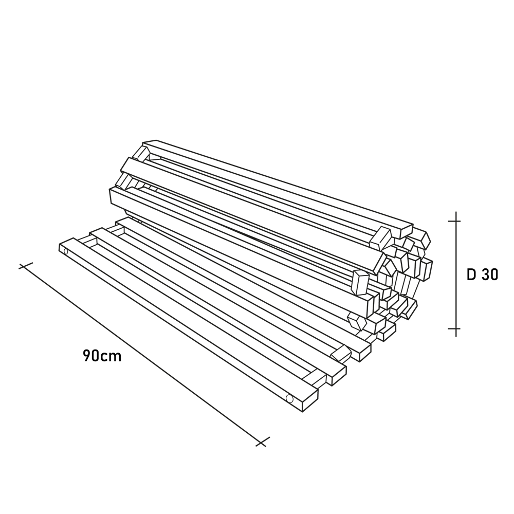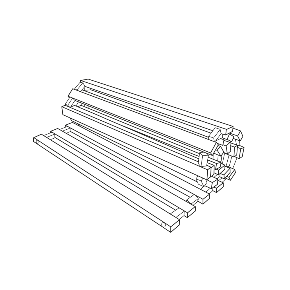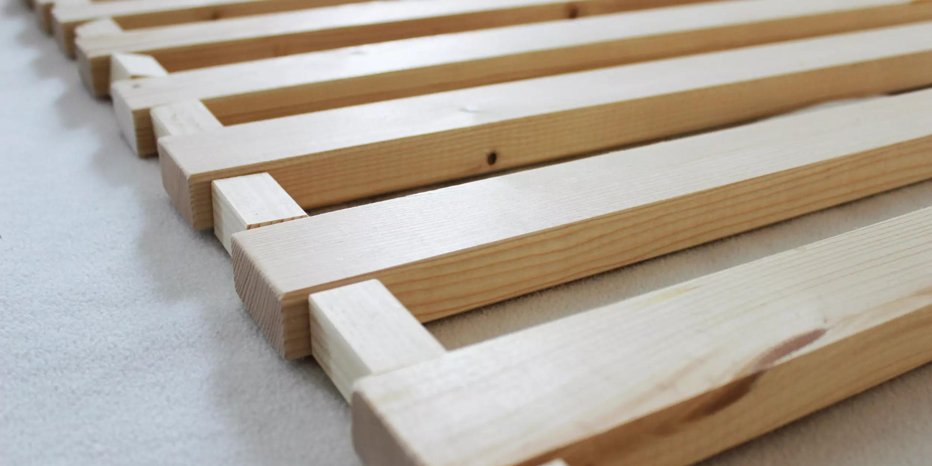 Unser Lattenrost ist eigentlich ganz einfach: Unbehandelte Fichtenholzlatten, die mit kleinen Abstandhaltern auf ein kräftiges Gummiband aufgefädelt wurden. So lässt er sich auch bequem zusammenrollen und transportieren. Ganz einfach, aber ganz praktisch. Wenn du eine gute Matratze hast, braucht’s gar ned mehr!
