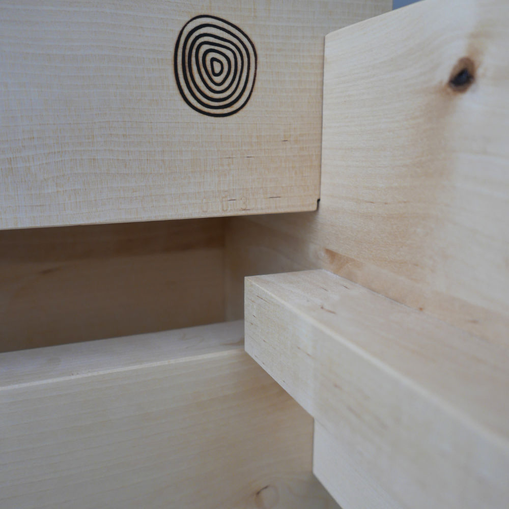 besonders der Kontrast aus Stirnholz und Längsholz zur Geltung.Die Steckverbindungen vom Lieserl sind ganz einfach